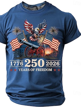 4 de Julho de 2026 250º Dia da Memória Camiseta Masculina Patriótica Retro Vintage Patriot Impressão 3D Veterano Gola Redonda Manga Curta Casual Esportes ao Ar Livre Rua
