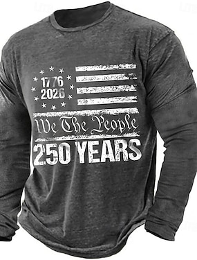 4 de julho de 2026 Dia da Memória 250º Gráfico Vintage Patriótico Desgastado Patriota Impressão 3D Bandeira Americana Bandeira Nacional Veterano Camiseta Crew Neck Manga Longa