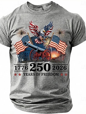 4 de julho de 2026 Dia Memorial 250º Moda Masculina Designer Patriota Gráfico Veterano Camiseta ao Ar Livre Rua