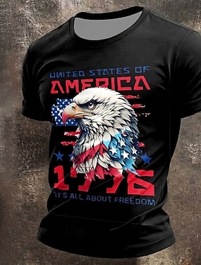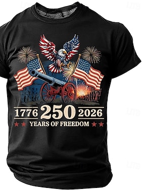 4 de julho de 2026 Dia Memorial 250º Moda Masculina Patriota Desgastada Gráfico 3D Impressão Bandeira Americana Bandeira Nacional Veterano Camiseta de Manga Curta Gola Careca