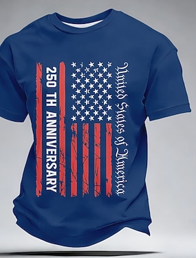 4 de julho de 2026 250º Dia da Memória T-Shirt Masculina Patriótica Patriota Gráfica Impressão 3D Bandeira Americana Veterano Gola Redonda Manga Curta
