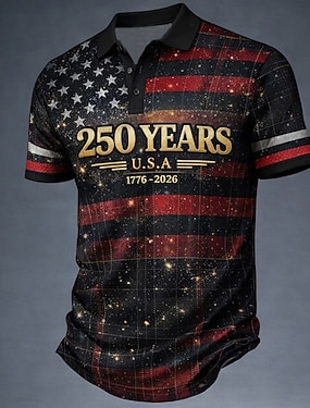 4 de julho de 2026 250º Homens veteranos Patriótico Camisas Polo Camisa de golfe Manga Curta Camisas polo Camisas de colarinho Casual Streetwear Roupas de férias Trajes de festa Impressão 3D Botões
