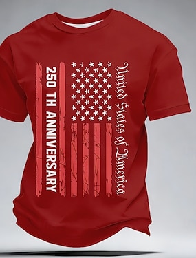 4 de Julho de 2026 250º Dia da Memória Camiseta Masculina Patriótico Patriota 3D Impressão Bandeira Americana Veterano Gola Redonda Manga Curta Rua