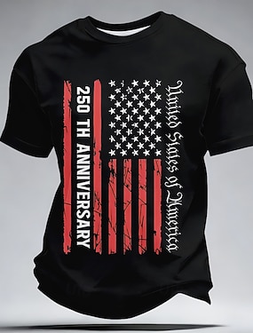 4 de Julho de 2026 250º Dia da Memória Camiseta Masculina Patriótica Gráfica Bandeira Nacional Veterano Manga Curta