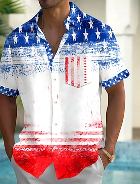 Dia da Independência Americana Homens 4 de julho - 250º aniversário dos EUA Bandeira americana Bandeiras camisa de botão Manga Curta Havaiana Casual Recorrer Casual Ao ar livre Feriado Verão Primavera