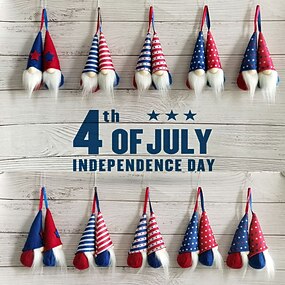 Conjunto de 10 pingentes pequenos variados para o Dia da Independência dos Estados Unidos: pingente de boneco de pelúcia de anão com estrela de cinco pontas, decoração para o festival de Rudolph.
