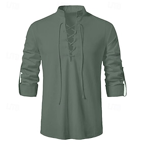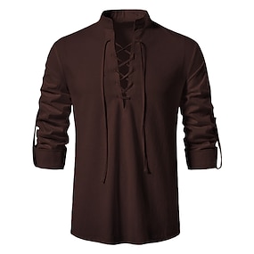 Medieval Renascentista Camisa Manga Comprida Pirata Viking Fantasia Homens Dia Das Bruxas Carnaval Espetáculo LARP Ren Faire Adulto Camisa