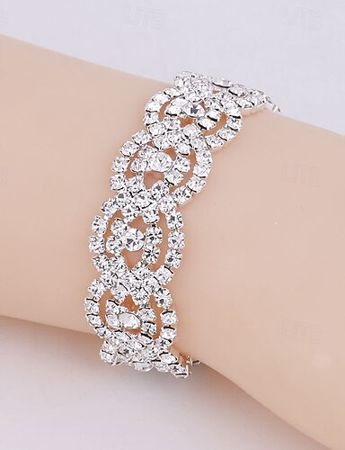 Pulseira de Cristal Elástica Mulheres Design Único Joias de Moda Prata Para Casamento Festa Casual Diário Máscara Festa de Noivado Prata Banhada Imitando Diamante Vários Esquemas de Colocação