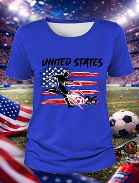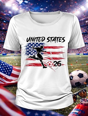 Camiseta Feminina World Soccer Match 2026 Impressão Gráfica Letra Estilosa Clássica Casual Manga Curta Gola Redonda Tops Regulares Diários Azul Amarelo Vermelho Verde Verão Primavera