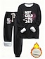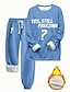 Conjunto de Pijamas Feminino Forrado de Fleece 2 Peças Moletom Roupas de Treino Conjunto de Loungewear Pijamas Forrado Puff Manga Longa Superior e Calça Impressão de Texto Confortável Casual Uso em