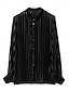 Mulheres Camisa Social Tops elegantes Tecido Listrado Elegante senhoras à moda Manga Longa Gola Redonda Tops regulares Diário Feriado Para Noite Botões Com Pregas Preto Verão Primavera