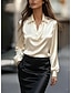 Mulheres Blusa Tecido Diário Manga Longa Decote V Tops regulares Diário Preto Branco Azul Damasco Outono
