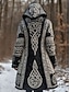 Mulheres Carregam Diário Casual Gráfico Geométrica Estriado Com Capuz Patchwork Bolsos Botões Manga Longa Tops longos Tricotar Ao ar livre Final de semana Preto Outono Inverno