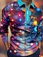 Natal Homens feliz Ano Novo Luz de Natal Camisa Social camisa de botão Manga Longa Moda Casual Ao ar livre Feriado Primavera Outono Aberto para a Lateral Impressão 3D camisas de colarinho Vermelho