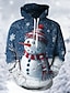 Natal Homens Boneco de Neve Moletom Estilo bonito Gola Redonda Com Capuz Casa Festa Presente Azul 1 Azul 3# Azul 2# Com Cordão Outono Inverno Designer S M L XL XXL XXXL