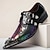 Sapatos artísticos masculinos de couro sintético para casamento – estampa de crocodilo preta e multicolorida com detalhes exclusivos, sapatos ousados e criativos para casamentos e eventos especiais.