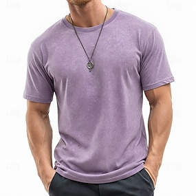 Homens Camisa 100% algodão com lavagem ácida Manga Curta Gola Redonda Verão Tecido Vintage Casual Tingimento em peça Desaparecido Casual Streetwear Azul Preto Rosa Top Tee para Homens