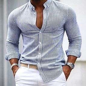 Homens Camisa Social Saia camisa de botão Tiras verticais Casual Diário Azul Preto Rosa Verde Manga Longa Aberto para a Lateral Verão Primavera Roupa