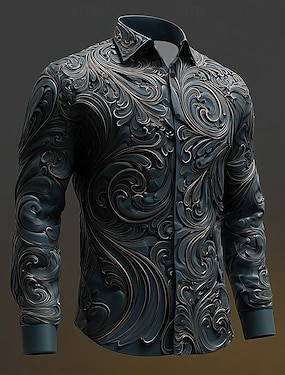 Homens Textura Redemoinho 3D Floral Intrincado Camisa Social camisa de botão Manga Longa Vintage retrô Estilo gótico escuro Ao ar livre Feriado Primavera Outono Aberto para a Lateral Impressão 3D