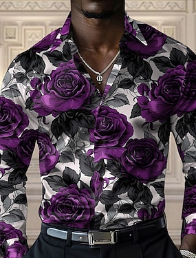 Carnaval Homens Máscara Carnaval Blusa de cetim Saia camisa de botão Manga Longa Moda Casual Feriado Verão Primavera Aberto para a Lateral Camisas de colarinho Impressão 3D Roxo