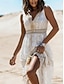 Mulheres Minivestido Vestido branco Vestido de renda Vestido casual Elegante Moda Moderno Ao ar livre Férias Para Noite Normal Tecido Sem Manga Decote V Preto Branco Verão Primavera