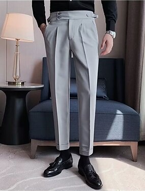 Homens Social Calças Calças Plissadas Calças de Terno Calça Gurkha Ascensão alta Tecido Conforto Respirável Casamento Ao ar livre Diário Elegante Vintage Preto Branco