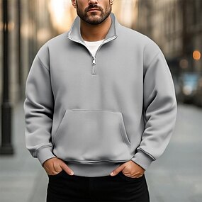 Homens Moletom Moletom com zíper Preto Branco Azul Marinha Cáqui Colarinho Clerical Tecido Quarter Zip Desportos e Ar livre Diário Feriado Poliéster Roupa de rua Básico Casual Primavera Outono Roupa