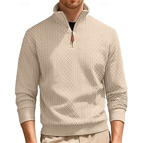 Homens Moletom Moletom Waffle Moletom com zíper Preto Azul Verde Cáqui Meio Zíper Tecido Estriado Quarter Zip Textura Diário Feriado Para Noite não imprimível Poliéster Roupa de rua Casual Outono