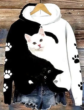 pulôver feminino casual gato diário casual moletom com capuz estampa manga comprida bege outono inverno