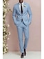 Masculino Smoking ternos de linho casamento na praia Festa Azul Céu sábio Primavera / Outono / Inverno / Verão Terno Lapela Chanfrada Moda Casual Cor Sólida Padrão Conjunto de 2 peças Comum 2 Botões