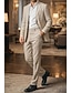 Masculino ternos de linho casamento na praia Casual Bege Primavera / Outono / Inverno / Verão Terno Diário Leve Cor Sólida Padrão Conjunto de 2 peças Comum 1 Botão