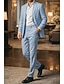 Masculino ternos de linho casamento na praia Casual Azul Céu sábio Verão Terno Lapela Chanfrada Negócio Formal Cor Sólida Padrão Conjunto de 2 peças Comum 1 Botão
