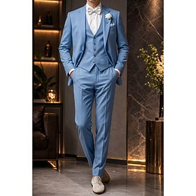 Masculino ternos de linho casamento na praia Branco Azul Céu Primavera Verão Terno Lapela Chanfrada Formal Cor Sólida Fino Conjunto de 2 peças Comum 2 Botões
