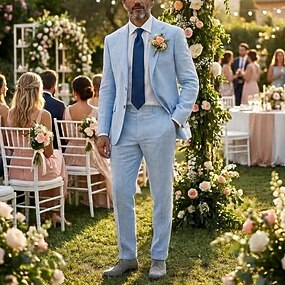 Masculino Smoking ternos de linho Festa Casamento Azul Céu sábio Primavera Verão Terno Lapela Chanfrada Moda Leve Cor Sólida Moderno Conjunto de 2 peças Comum 2 Botões