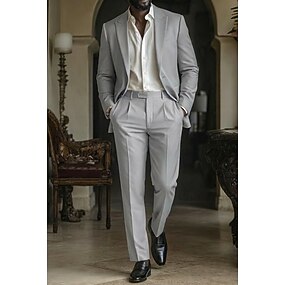 Masculino Smoking Ternos de festa Casual O negócio Cinzento Outono & inverno Terno Lapela Chanfrada Moda Formal Cor Sólida Fino Conjunto de 2 peças