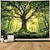 Tapeçaria de parede com floresta encantada, árvore da vida ancestral, raios de sol, musgo, folhagem verde, paisagem natural, decoração para sala de estar, quarto, mural para pendurar na parede.