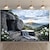Tapeçaria de parede com vista para caverna, cachoeira, musgo verde e cascata em meio à selva tropical. Ideal para decoração de quarto, sala de estar e casa.