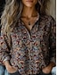 Mulheres Camisa Social camisa Boho Botões Imprimir Floral Vintage à moda Étnico Manga Longa Colarinho de Camisa Tops regulares Diário Feriado Para Noite Vinho Cáqui Primavera Outono