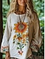 Camiseta Feminina de Manga Longa com Gola Redonda Tunica Floral Gráfica Casual Tops Regulares Estampa Diária Branco Preto Preto Azul Laranja Marrom Primavera Outono Pré-outono