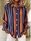 Mulheres Camisa Social Blusa Gráfico Geométrica Listrado Casual Manga Longa Colarinho de Camisa Tops regulares Diário Patchwork Botões Imprimir Azul Laranja Verde Primavera Outono Inverno
