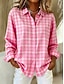 Blusa Feminina de Manga Longa com Botão Camisa Básica Diária Xadrez Botões Bolso Estampa Regular Tops Colarinho Casual Rosa Azul Verde Outono  Inverno