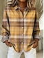 Camisa Feminina Tunica Button Down com Colarinho de Manga Longa Xadrez Casual Roupas Regulares Trabalho Diárias Impressão Amarela Primavera Outono Inverno