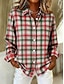 Mulheres Camisa Social Blusa Gráfico Geométrica Xadrez Casual Manga Longa Colarinho de Camisa Tops regulares Diário Patchwork Botões Imprimir Amarelo Vermelho Azul Laranja Verde Outono Inverno