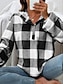 Suéter Feminino com Zíper de 1/4 Gráfico Geométrico Casual Manga Longa Decote Redondo Tops Regulares Street Wear Diário Impressão Meia Preto Amarelo Rosa Vermelho Roxo Outono Inverno
