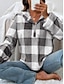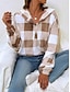 Mulheres Pulôver Moletom Com Capuz Xadrez Casual Manga Longa Com Capuz Tops regulares Rua Dia a Dia Bolsos Imprimir Preto Marron cáqui Cinzento Outono Inverno