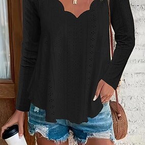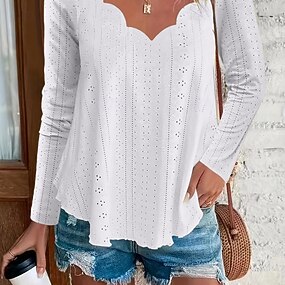 Blusa Feminina Peplum Cor Sólida Estilosa Casual Manga Longa Decote Redondo Tops Regulares Dia a Dia Babados Ilhós Branco Amarelo Azul Verde Verão Primavera
