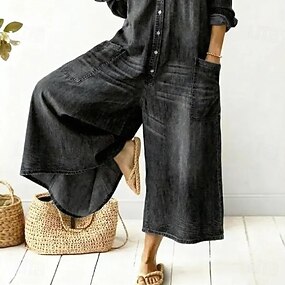 Mulheres Blusa Botões Côr Sólida Diário Básico Casual Manga 3/4 Colarinho de Camisa Tops regulares Diário Preto Branco Vermelho Roxo Claro Camelo Verão Primavera