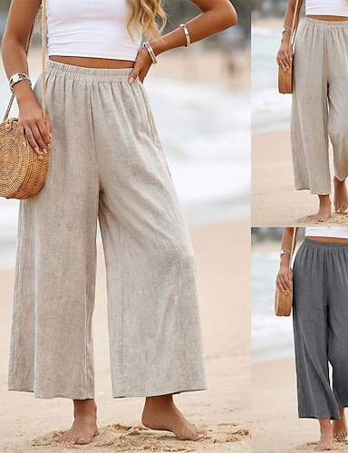 Mulheres Linho de algodão sintético Calças Calça verão Calças largas Férias Básico Casual Comprimento total Cintura Alta Tecido Perna larga Cintura elástica Macio Respirável Micro-Elástica Praia