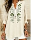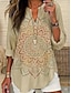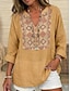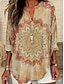 Mulheres Camisa Social Túnica Imprimir Gráfico Flor Boêmia Vintage Diário Manga Longa Decote V Tops regulares Diário Feriado Amarelo Cáqui Verão Primavera Outono