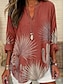 Mulheres Camisa Social Túnica Imprimir Floral Gráfico Vintage Diário à moda Manga Longa Decote V Tops regulares Diário Feriado Vermelho Verão Primavera
